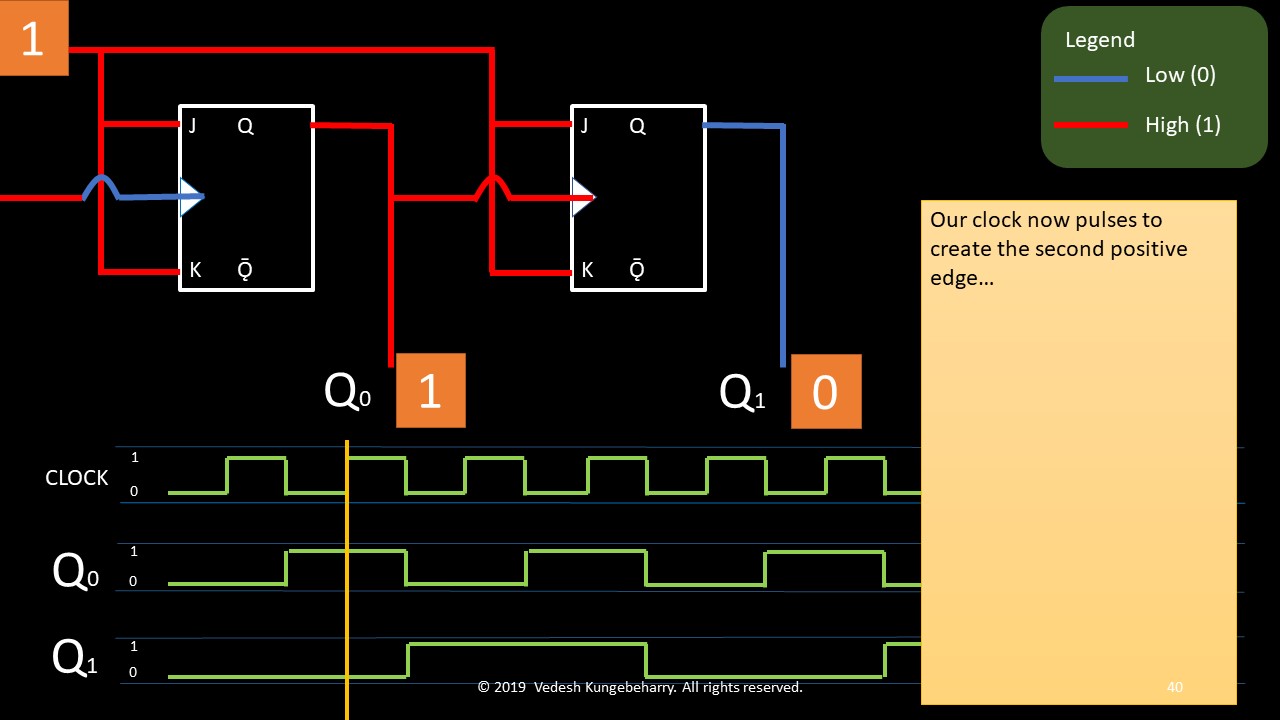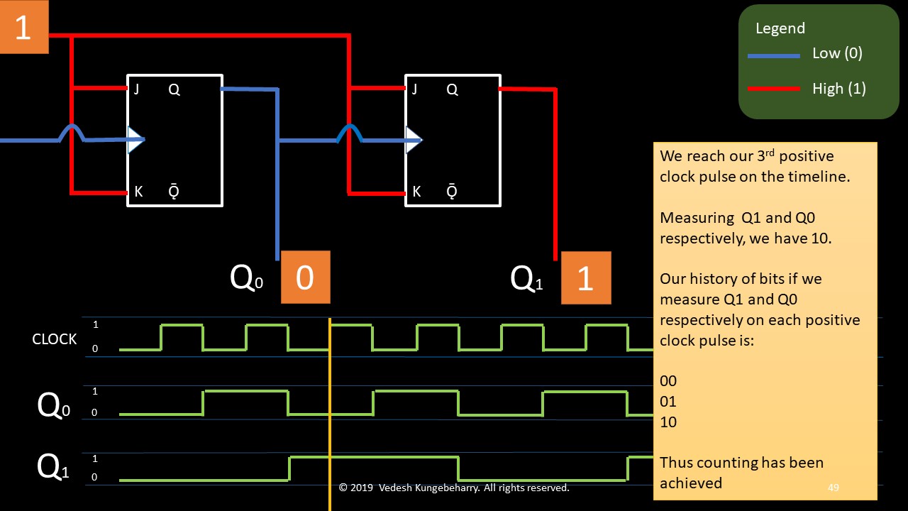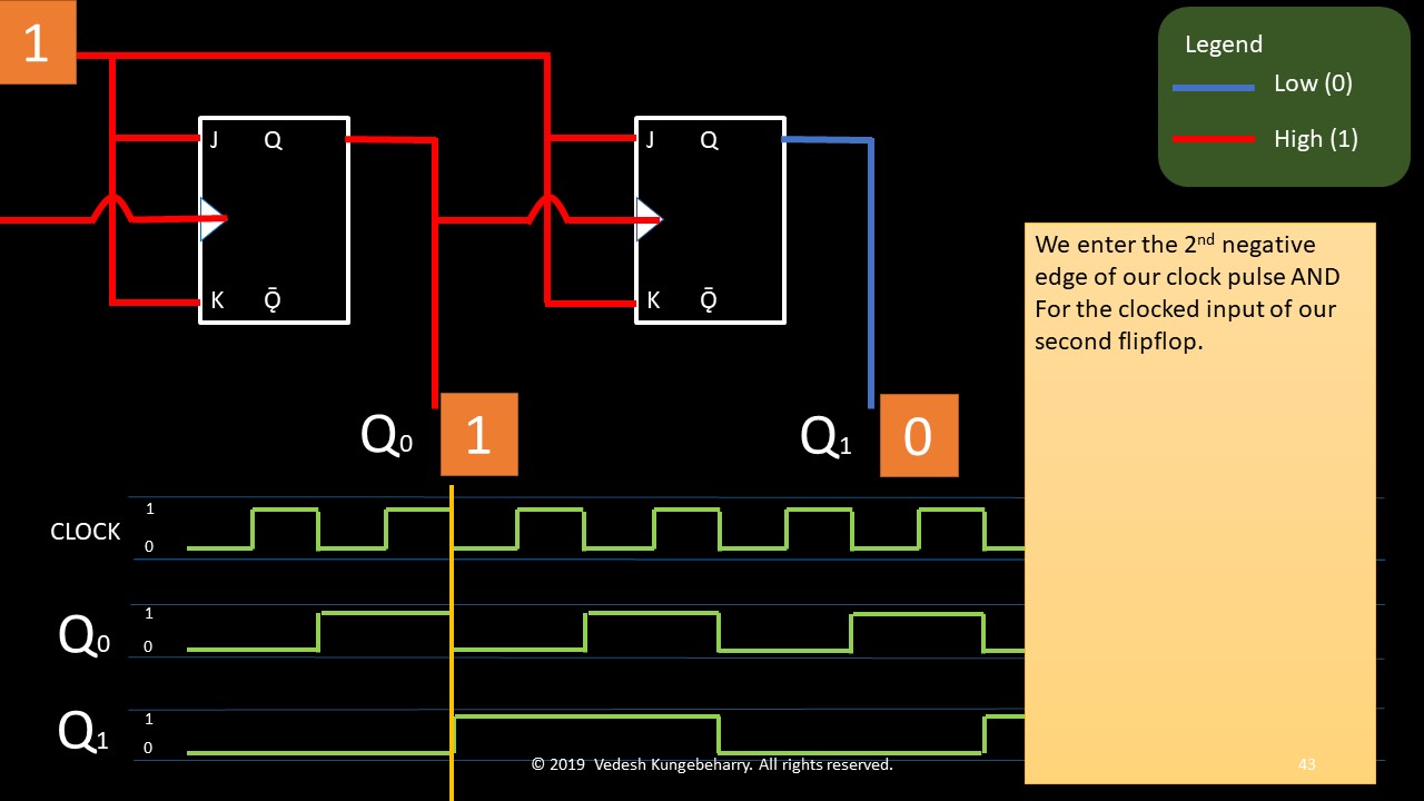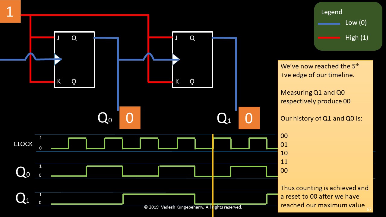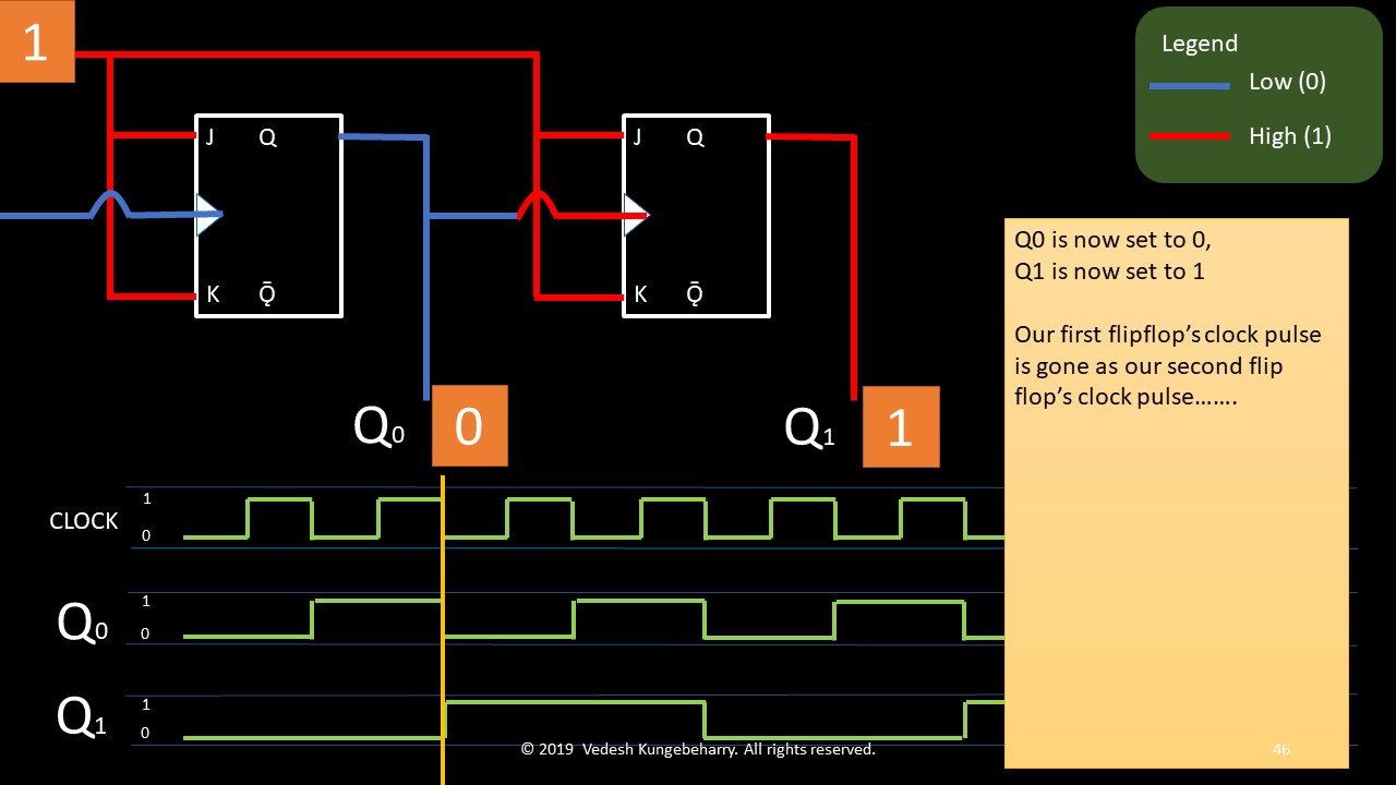 Computer Science The Ripple Counter Explained (Animation) November 21, 2019November 21, 2019 vkungeLeave a comment The Slideshow below shows how clocked JK Flipflops can be used to achieve counting. © 2019 Vedesh Kungebeharry. All rights reserved. Share this: Click to share on X (Opens in new window) X Click to share on Facebook (Opens in new window) Facebook Like Loading... Related